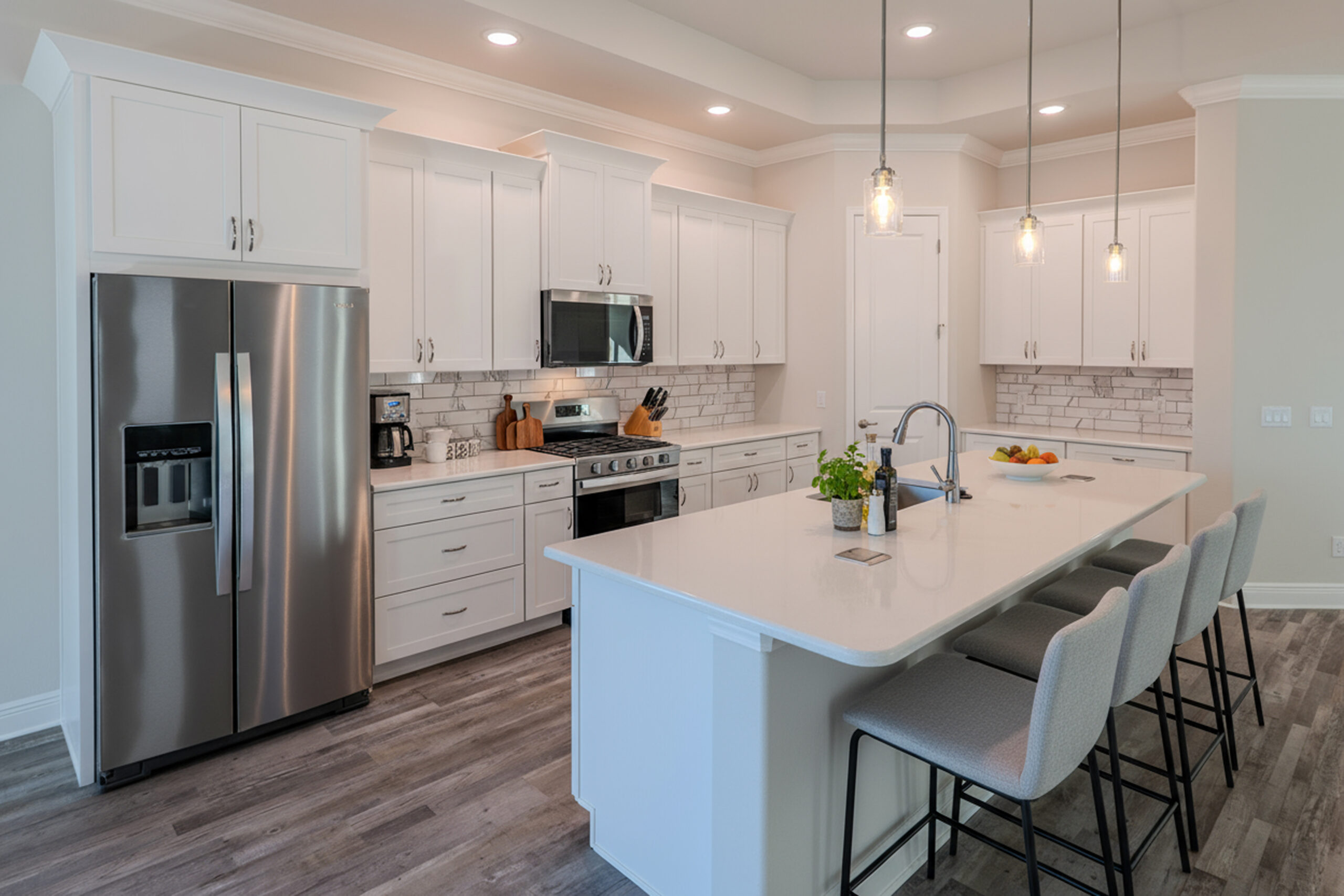 - Upgraded maple cabinets with soft-close doors & 42″ uppers