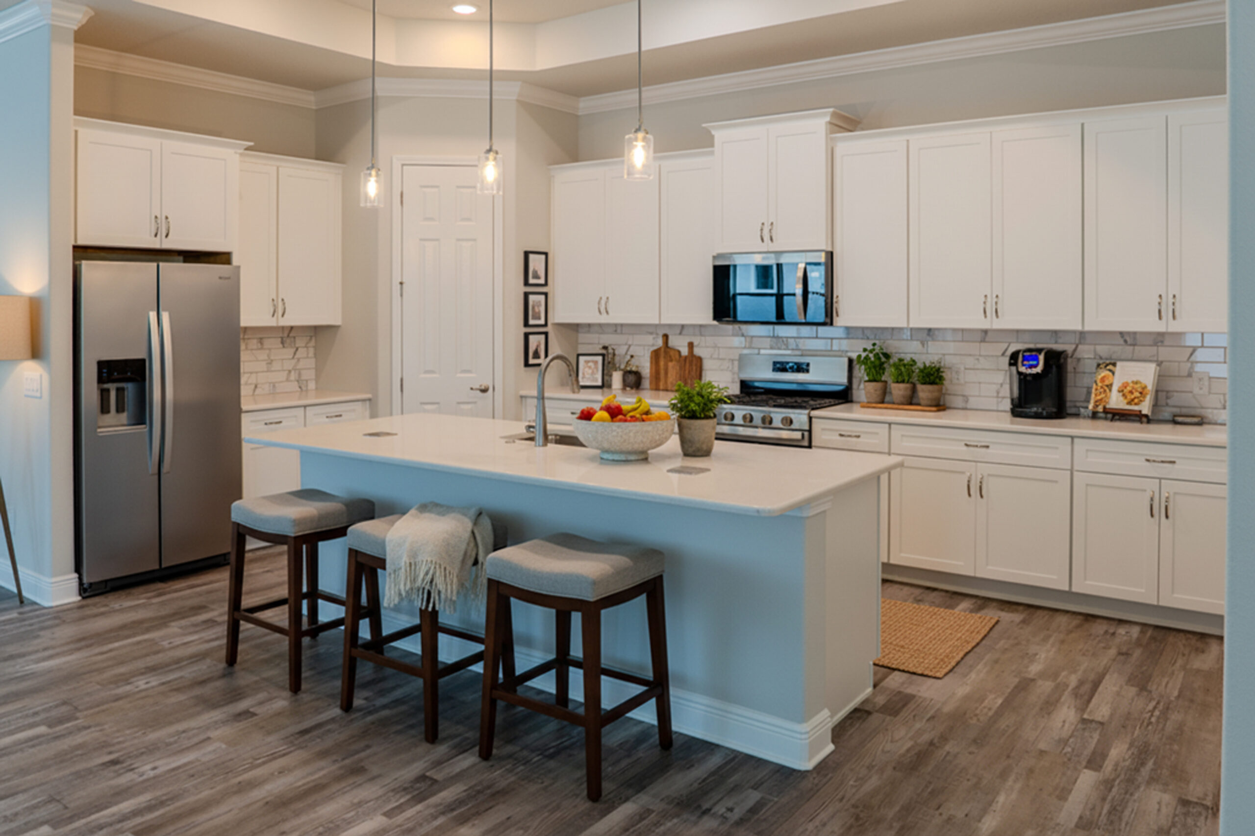 - Upgraded maple cabinets with soft-close doors & 42″ uppers