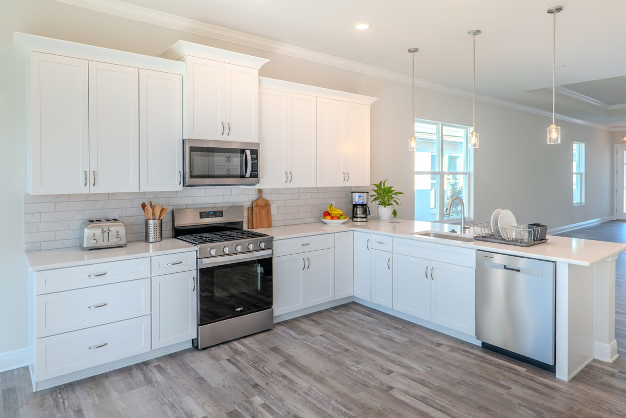 - Upgraded maple cabinets with soft-close doors & 42″ uppers