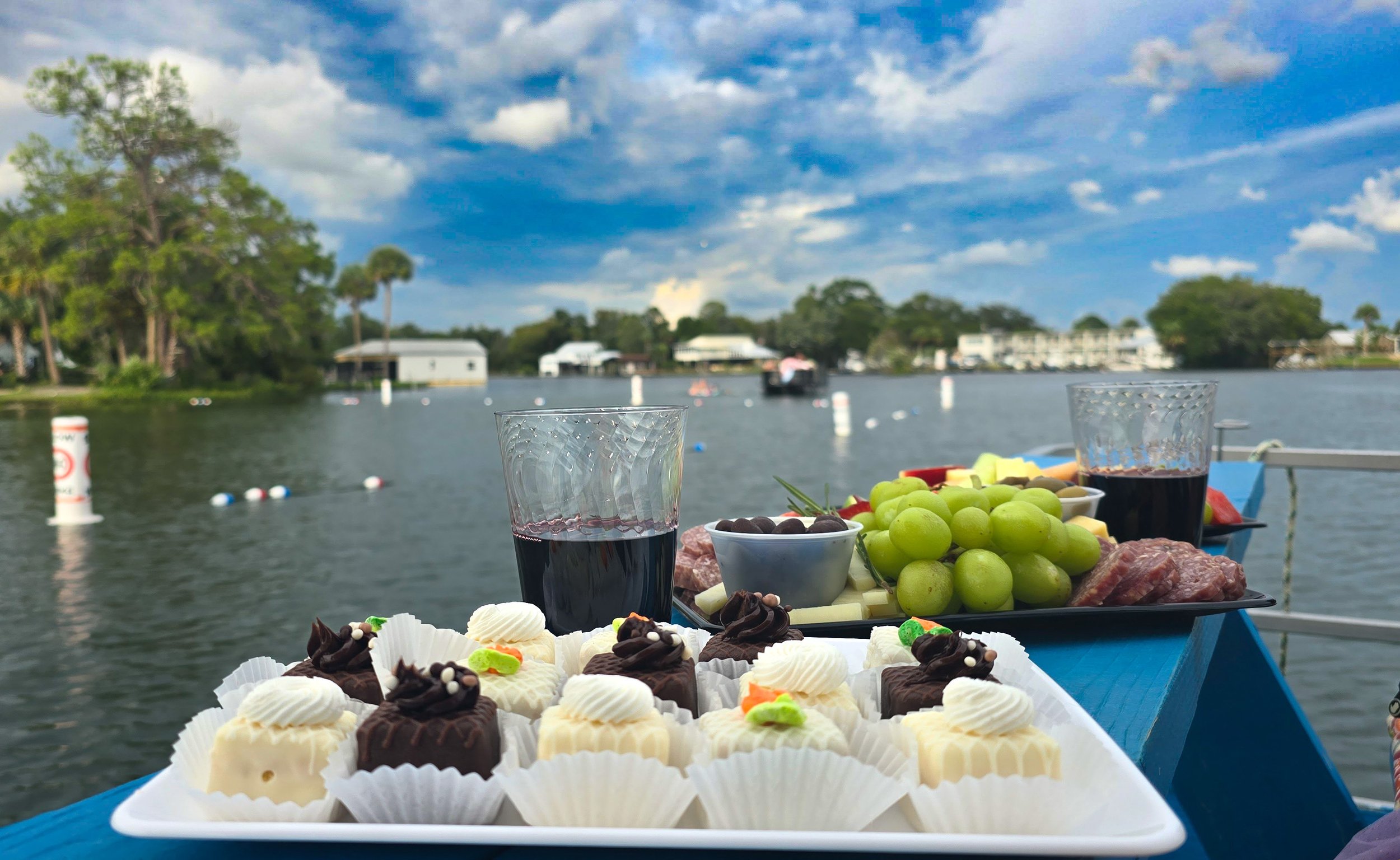 One of the unique features of the Crystal River Tiki Tour is the ability to bring your own food and drinks on board, making it a truly personalized experience. We brought along a selection of delicious petit fours, a rich cabernet, and a beautifully arranged charcuterie board with a fruit tray. As we cruised through the serene waters, we enjoyed our meal while taking in the stunning views around us. There’s something truly special about dining al fresco on the water, surrounded by the beauty of Crystal River. The combination of good food, great company, and breathtaking scenery created a perfect moment that I’ll cherish for a long time.